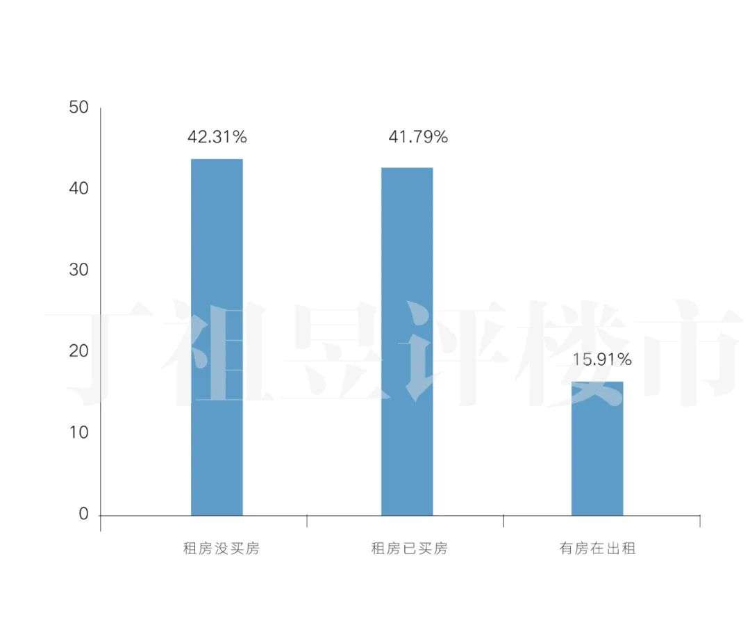 本次问卷调查与前几次问卷不同,有部分问题以人群区分成不同的提问设置,其中租房未买房与租房已买房的受访家庭人数相当,分别占总受访家庭的42.31%与41.79%,有房在出租的房东受访家庭相对较少,约为15.91%。