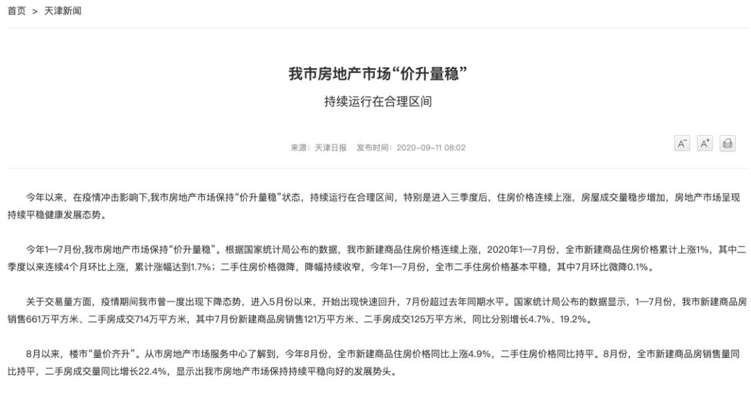不过,最先坐不住的反而是天津住建委,11号一早就在官网首页发布了一则通告:我们没跌,现在量价都倍儿稳~