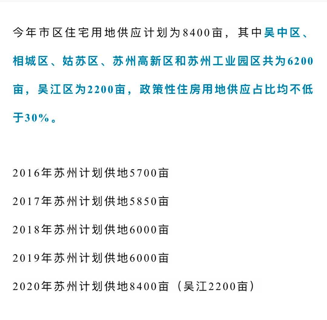 比如2016-2019年苏州的土地供应都在6000亩上下,今年大幅增长到8400亩。