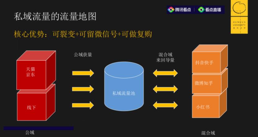 遇到这种情况,商家就要想办法把混合域的流量导入私域,这样既可以裂变,还可以做复购,而且复购的过程没有任何人再收通道费。