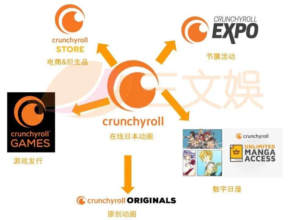 成长到现在,Crunchyroll早就不仅仅是一家日本动画平台。在业务布局上,Crunchyroll和B站一样,借助视频平台积攒起来的流量,进入原创动画、二次元游戏发行、网络漫画、漫展、衍生品等领域。