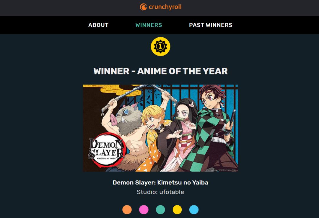 Crunchyroll还组织了一个日本动画奖项 Crunchyroll Anime Awards,也是从2017年开始举办,每年年初举办选出前一年的年度动画。除了年度动画奖外,还有最佳导演、最佳人设、最佳打斗场景等奖项。所有Crunchroll的用户都能投票支持自己喜欢的动画,所以这是一个面向Crunchroll社区的奖项。今年Crunchyroll Anime Awards总共收到了1100万张选票,选出来的年度动画是《鬼灭之刃》。