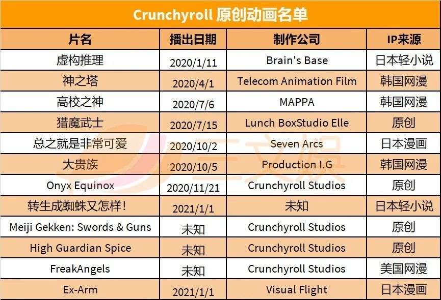 今年2月份,Crunchyroll宣布启用“Crunchyroll Originals”品牌,官宣了12部原创动画,这些作品有的是联合投资,有的是完全由Crunchyroll出资。