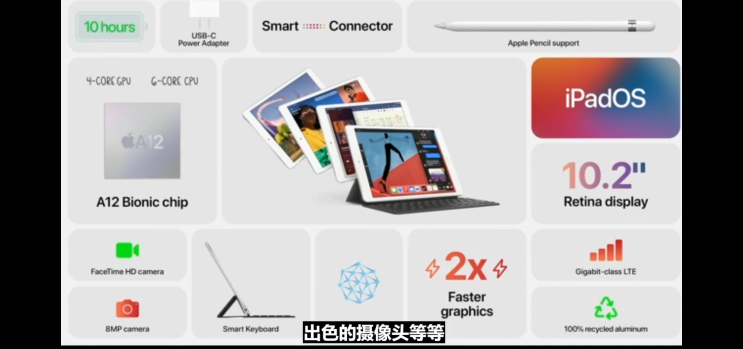 随后,苹果宣布推出新一款低价版 iPad 8,搭载 A12 仿生芯片,CPU 速度提高了 40%,比最畅销的 windows 版本平板速度快 2 倍,安卓版本平板快 2 倍,Chromebook平板快 6 倍。