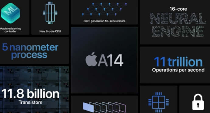而在推出新品之前,苹果发布会的镜头转向了芯片实验室,苹果新一代仿生新品 A14 露出真容,其拥有118亿个晶体管。搭载A14的iPad Air,与以前的iPad Air相比,CPU速度提高40%;图形性能是同类Windows笔记本的2倍,其每秒可执行11万亿次操作;神经引擎将机器学习性能提高了2倍。