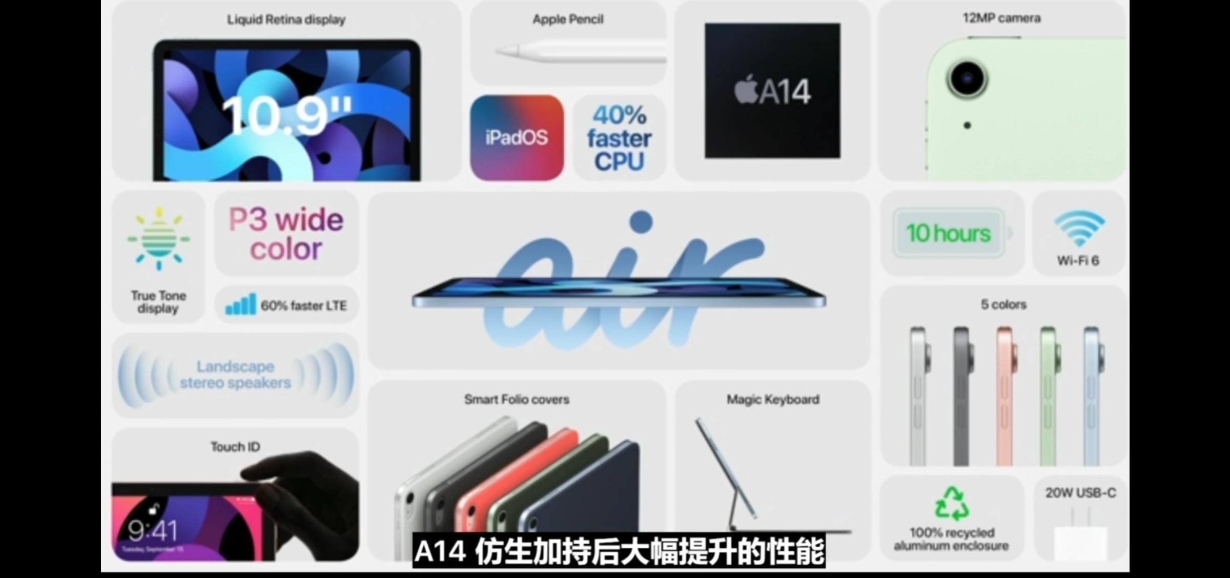 新款 iPad Air采用了A14仿生芯片,这也是苹果第一次在新款iPhone之前优先在iPad上采用新芯片,而搭载 A14后,新款iPad Air比上代在机器学习方面提升10倍。