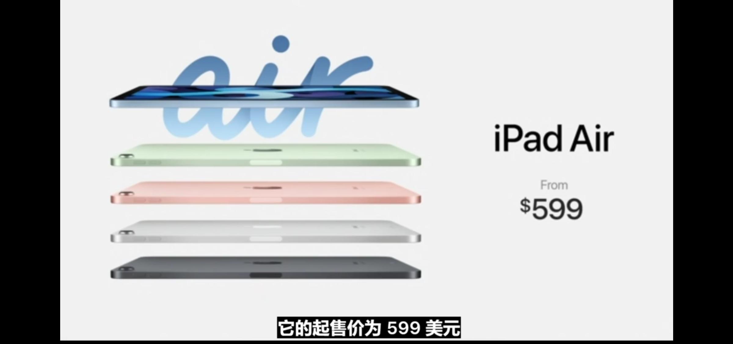 最后,苹果公布了 iPad Air 的价格,其售价599美元起(约合人民币4000元),将于下月开始发售。