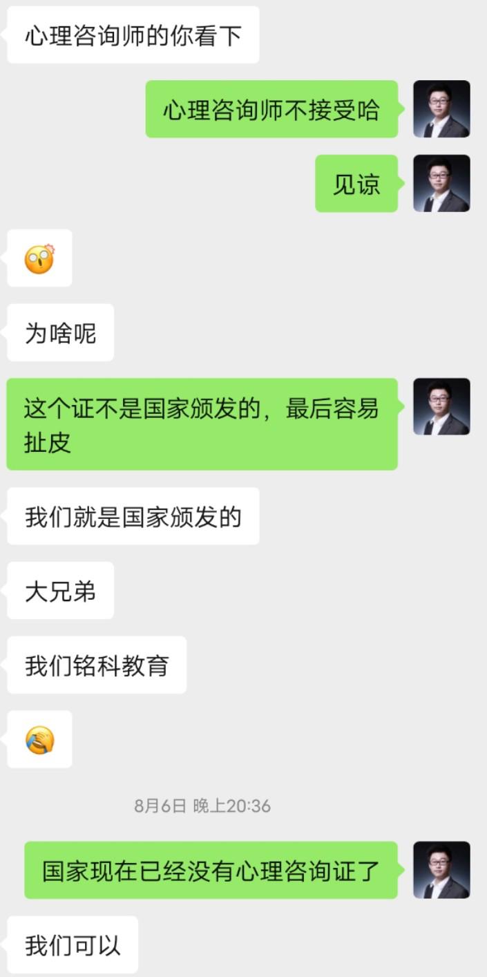 在我点明人社部已经取消国家心理咨询师资质之后,他居然说他们依然可以颁发……