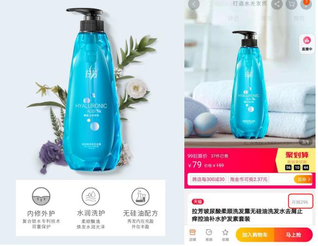 譬如,两年前拉芳推出玻尿酸高端洗护系列,主打头发和皮肤补水、锁水功能,还凭借玻尿酸洗发水获得“2018风格大赏”最佳单品年度口碑奖。但该系列在拉芳天猫旗舰店的月销量不到300件。