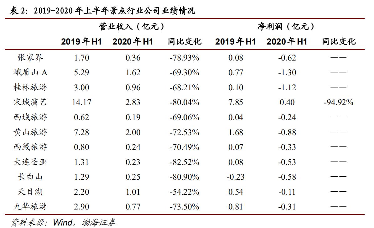 据渤海证券统计,景区行业在2020年上半年毛利率为6.10%(整体法),较2019年同期下降了48.68个百分点,净利率为-57.75%。