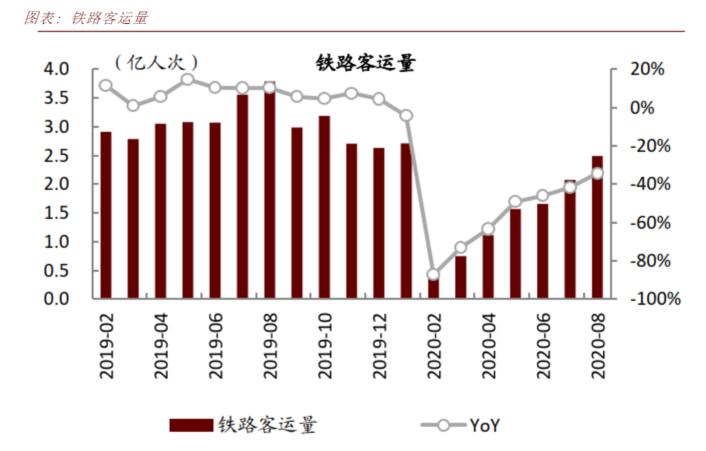7月和8月,全国铁路运输旅客2.07亿/2.49亿人次,相当于去年同期的58%和66%。