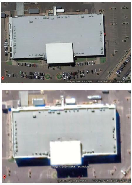 在当年6月份就有外媒报道称,尼古拉尚未在其屋顶上安装任何太阳能电池板。兴登堡也从谷歌地球中提取了尼古拉总部(亚利桑那州凤凰城百老汇路4141号)2019年8月和2020年1月的卫星图片,从卫星图片上很清楚的看到尼古拉总部的屋顶上并没有太阳能电池板。