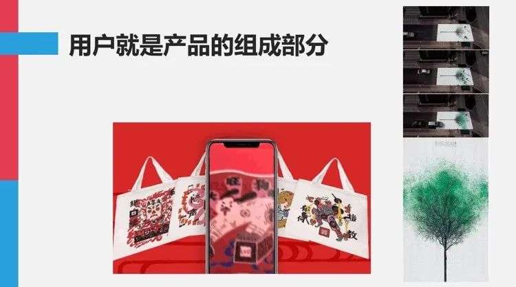 用户成为产品的组成部分,其实是很有多方式的。比如可以把在线设计的图案,一键印刷到围巾上;在包包上印刷可扫描的图案,用手机扫描可以看到互动游戏的一部分。