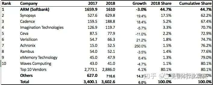 另外,从其公布的报告中看,从2017到2019年当中,IP市场前十大厂商仅出现了一次变化——SST,从2018年的10名开外,一举冲到了2019年的第四,而其它9家厂商排名没有明显变化。