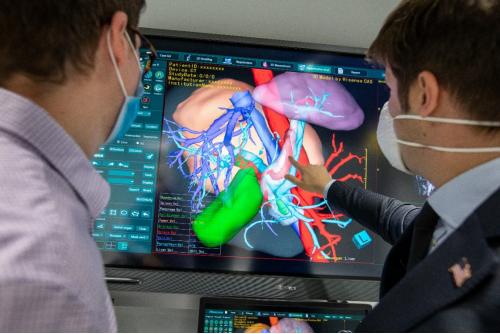 海信医疗的工作人员介绍,通过CAS提供精准的三维重建,达芬奇机器人与海信三维重建结合应用,能使主刀医生较普通腹腔镜手术更准确把握操作距离、辨认解剖结构,从而提升手术精确度。