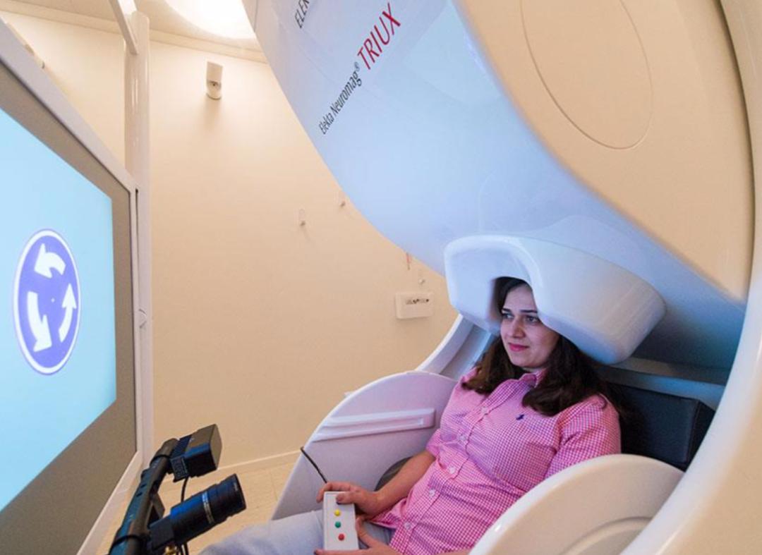 图:麻省理工学院使用脑磁图 MEG 进行非侵入式脑调控研究。图片来源 https://mcgovern.mit.edu