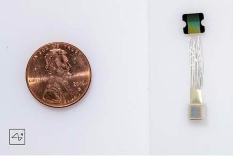 在最新的方案中,大脑颅骨上面会被挖出一个小孔,包含了放大器模数转换器等元件的信号处理器被做成一个尺寸为直径 23 mm 厚度 8 mm 的大硬币形状圆柱体(我国 1 元硬币的尺寸为直径25 mm,厚度 1.85 mm)。外部无线化的实现,提升了美观度和应用可能性。