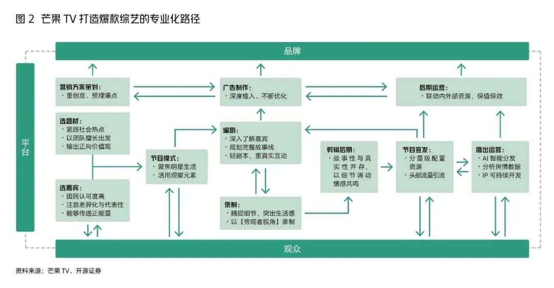 这种思路也符合吴梦知所说的爆发品类——在爆款品类上布局多款综艺,一是提高内容研发资源的利用率,二是前面提到的内部赛马机制。这种“裂变式创意法”可将已有的成功节目打造成IP矩阵,效果由“加”变为“乘”。同时,独立的内容团队累积制作同类节目的经验,既使得芒果TV在网综内容垂直化、主题化的道路上先行一步,也有利于资源共享降低边际成本。