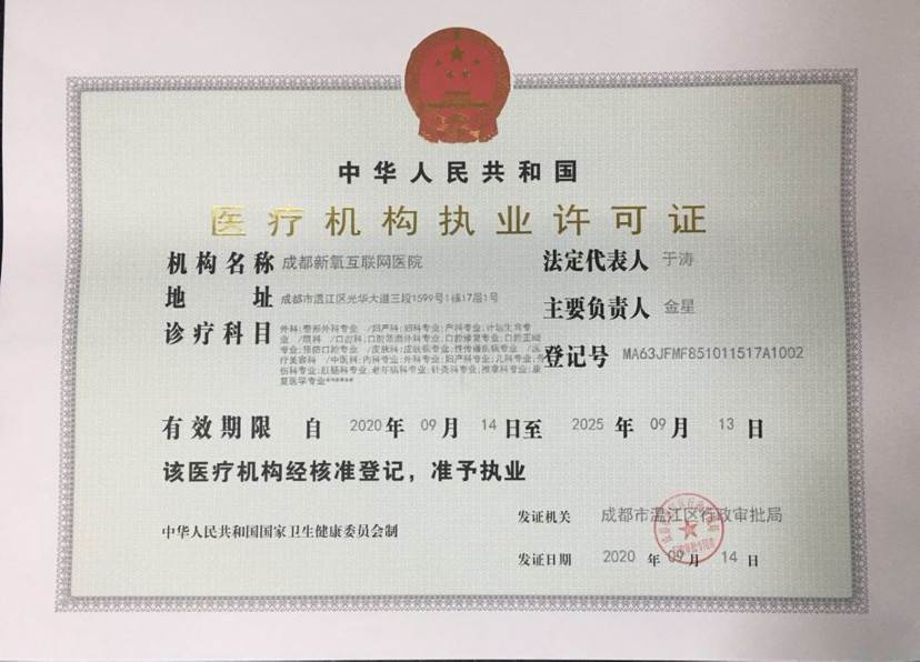 2020年9月16日,成都新氧互联网医院执业牌照《医疗机构执业许可证》正式获批,新氧科技成为首批在成都获得互联网医院执照的公司。