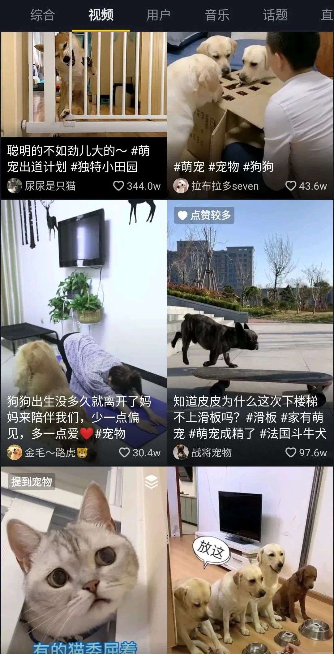 各平台上都有大量宠物视频博主 图片来源:APP截图