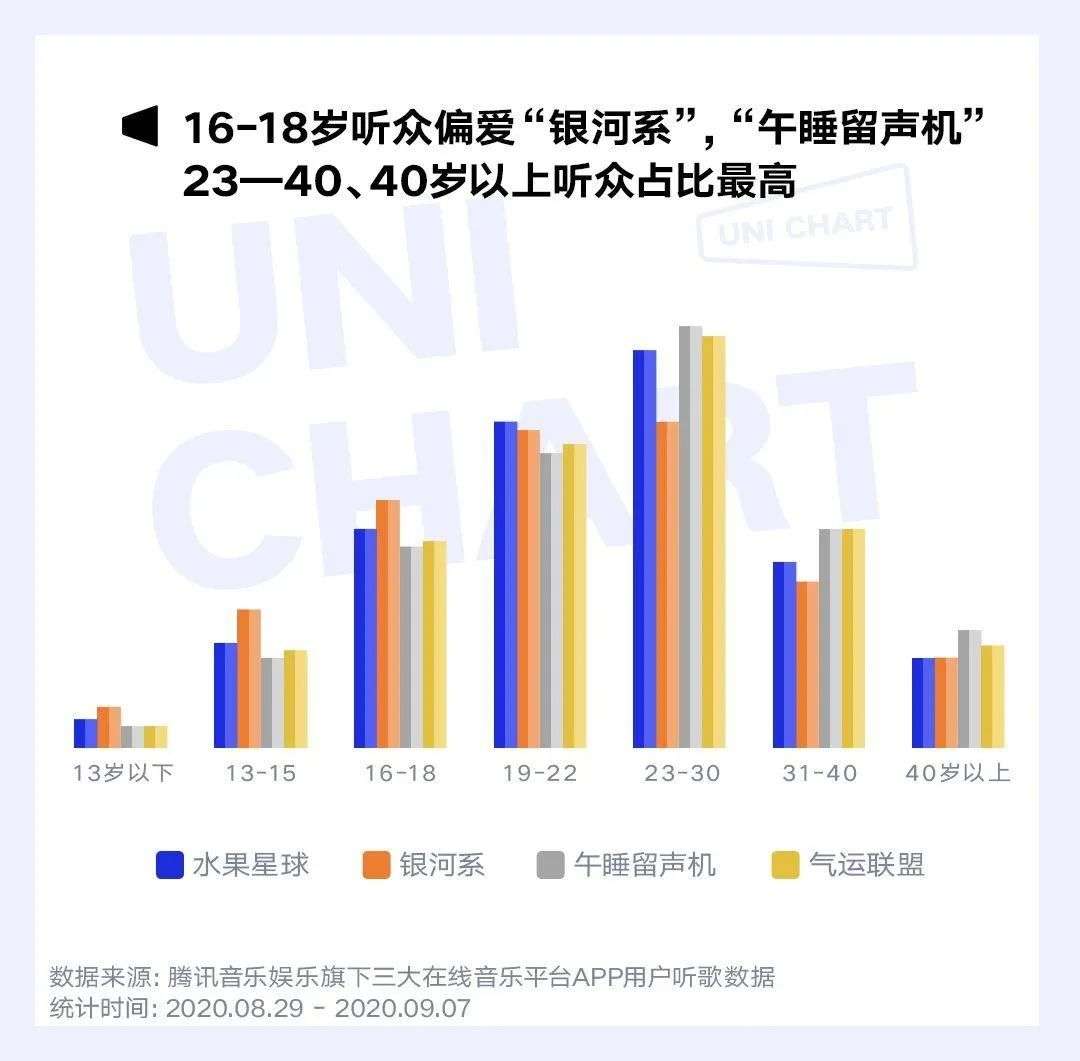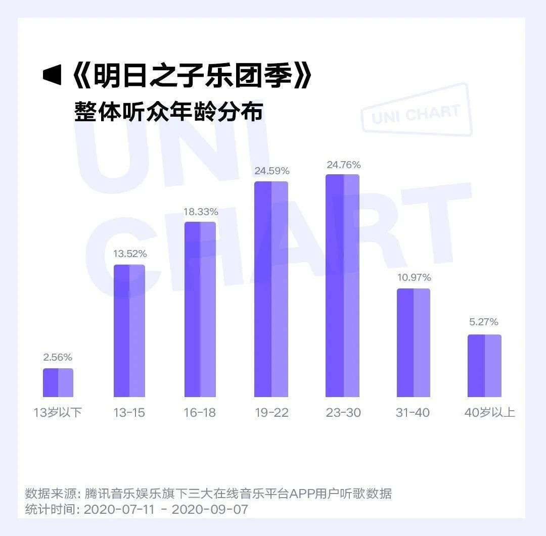 从腾讯音乐旗下app的用户听歌数据来看,恰好也佐证了这个观点,这是一档「由年轻人构成的节目」。主要受众年龄层集中在23-30岁的「90后」,而16-22岁的「95、00」后年轻用户也占据了极大比重。