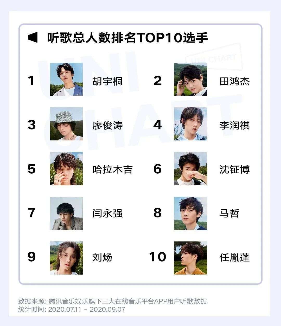 决赛之前,《明日之子4》听歌总人数TOP10选手