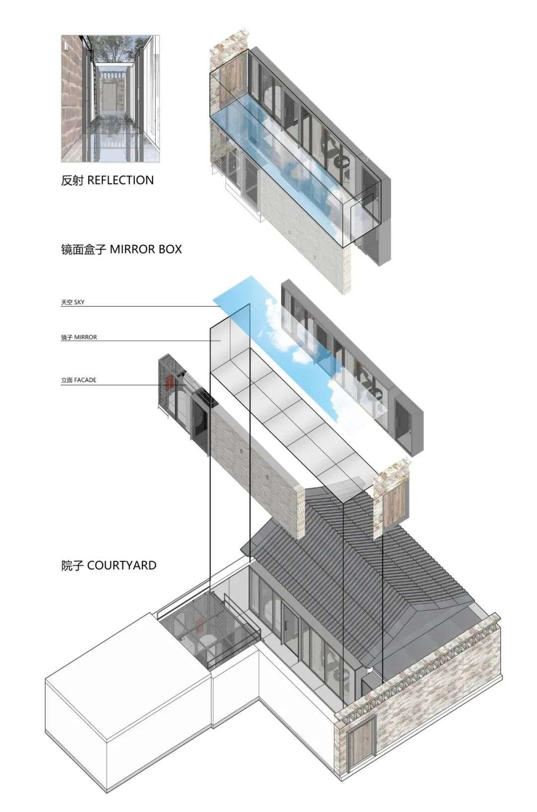 改造后的老房小院是个镜面空间