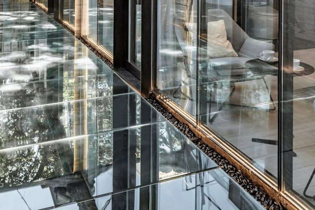 刘天萌起初担心会有隐私问题,但申江海做了全面的测量,无论从院子的哪个角落去折射、反射,周边都不会看到屋内的情况,于是他们决定实践这个大胆的尝试:院子地面和局部墙面铺设镜子和钢化玻璃,一共花了1.5万。
