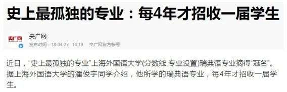 “史上最孤独专业”看来不止是古生物和考古,还有上海外国语大学的瑞典语专业,每四年才招收一届学生,从大一到大四,都看不到师姐师妹,而且想留级都没地方可留。