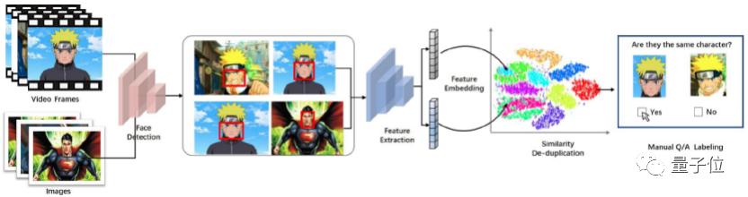 为了减少人工标注的工作量,研究者们设计了一种半自动数据集构建框架,用于构建iCartoonFace数据集。