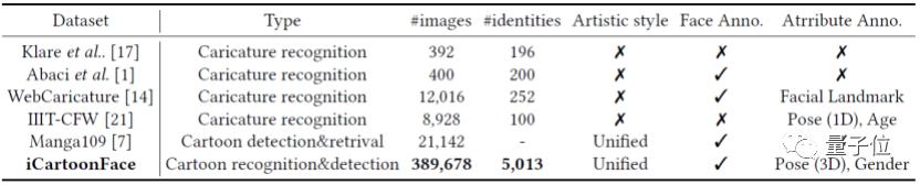 下图是iCartoonFace与其他已有动漫数据集的对比,基于这个数据集设计框架,可以有效地提高卡通人物识别性能。
