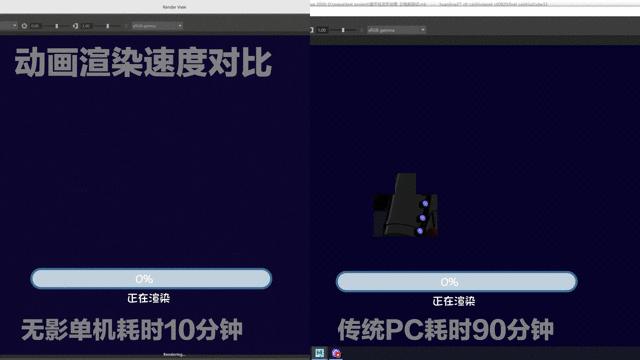 「无影」与传统 PC 动画渲染速度对比.