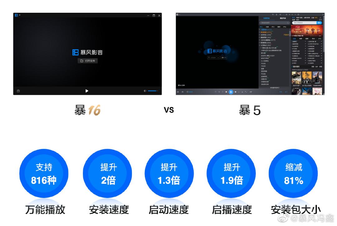 风暴影音“暴16”版本与“暴5”版本对比。来源/冯鑫微博