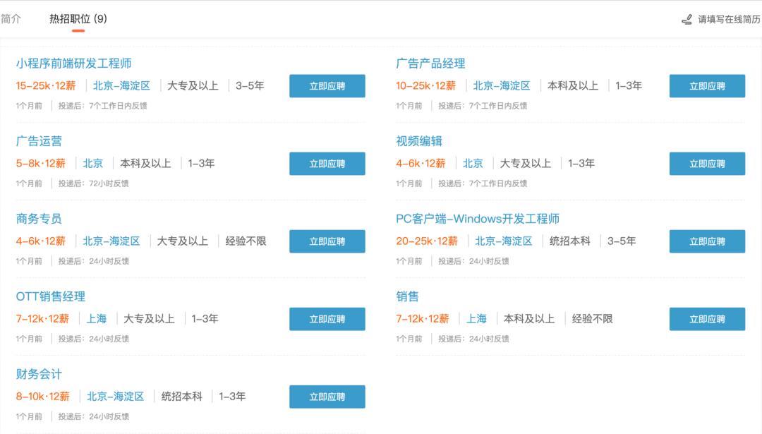 暴风的招聘信息。(来源:猎聘网)