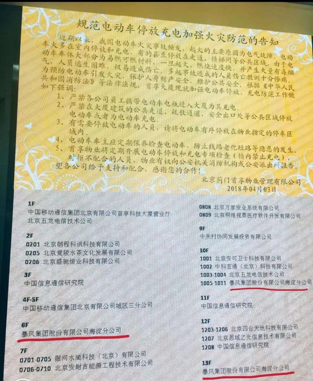 原首享科技大厦内入住企业信息图,摄于2018年4月3日