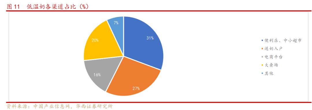 最后,渠道和履约成本高。由于低温奶家庭自饮居多、保质期短,导致消费频次高,无法囤货。因此,目前市场上低温奶渠道占比中,便利店、中小超市这种消费者频繁出入的渠道占比最高,达到31%,其次就是送奶入户的渠道,占27%。