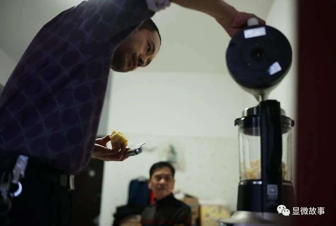 父亲避免近距离接触带来细菌,送饭的时候只在门口