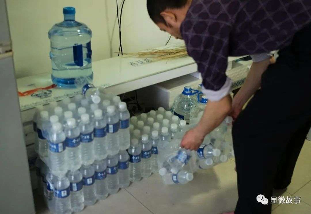 怕细菌感染,王奕卜喝的都是矿泉水