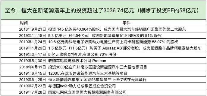 2019年,恒大不到一年时间里砸了超过3000亿买了新能源汽车造车的每个环节。恒大研究院在一份报告中更是激动地写到,“恒大短时间内完成新能源汽车产业链闭环布局,奠定行业领军企业的基础。”