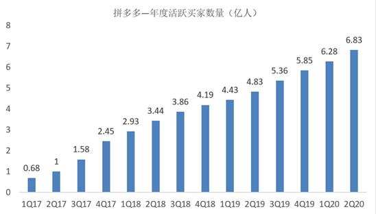 根据各家电商二季度财报,拼多多的年度活跃买家人数在二季度增长约 5500 万人,达到 6.83 亿人,越来越逼近龙头阿里巴巴,但是也意味着距离行业的天花板越来越近,增速在放缓。由于增速不达预期,在不久前二季度财报发布当天,拼多多股价单日跌幅达到 13%。