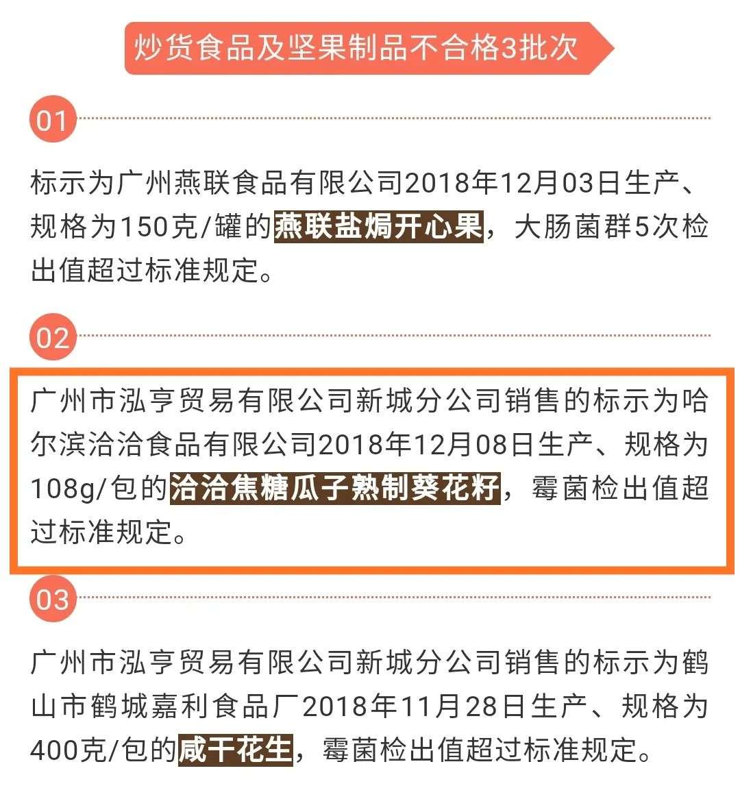 食品安全问题也一直困扰着洽洽。2019年8月28日,广州市场监督管理局发布的2019年期9期食品安全监督抽查信息公告中提及,洽洽焦糖瓜子熟制葵花籽霉菌检出值超过标准规定。就在5天前,2019年8月23日,北京市场监督管理局发布的2019年第34期食品安全监督抽检信息公告中,洽洽生产的坚果与籽类食品,因二氧化硫残留量不符合食品安全国家标准规定。
