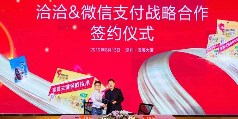 2019年8月13日,微信支付与洽洽食品在腾讯滨海大厦正式签署战略合作协议。根据双方规划,洽洽将依托微信生态流量能力,接入面对面、附近发券等功能为品牌小程序获得初始顾客,提高留存率。微信支付为洽洽提供 「商家卡片」入驻,增加小程序电商的全新入口,减少品牌运营成本,推动洽洽食品私域流量的积累。但该功能(主要包括小程序和卡劵功能)其实2017年就已经推出,同期已经有很多品牌使用该功能获客,洽洽似乎又犯了后知后觉的老毛病。