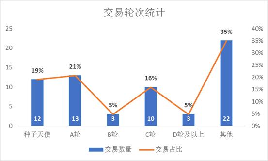 本周大额融资事件数量共17笔,相比上周(30笔)减少近50%。本周大额融资集中赛道Top 3分别是:医疗健康(7笔)、电商(2笔),和人工智能(2笔)。医疗健康在融资次数上也是位居前三。其中,医疗健康过亿元融资项目超过一半,11笔融资项目中有7笔过亿项目。无论数量还是质量都大幅超越其他融资赛道。大额交易事件其中一笔来自教育赛道,来自中小学互联网个性化学习平台乐乐课堂宣布完成C轮4000万美元融资,本轮融资由全球最大的教育科技投资基金Owl Ventures 领投,晨兴资本、光速中国、新东方产业基金及蓝驰创投等老股东全部跟投。同时,民营火箭公司「天兵科技」宣布完成了数亿元人民币A轮融资,融资由浙大联创领投、载合投资跟投,将主要用于天兵科技“天火”系列HCP火箭发动机全系统热试车,“天龙”系列液体运载火箭的首飞投产和人才队伍建设。这也是公司半年以来获得的第二笔过亿元融资。