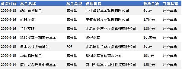 36氪经公开资料整理,本周共有7支基金开始募资,计划募集资金规模超过20亿人民币。其中最大笔募资为华润腾康基金,规模达10亿元人民币。该基金由企鹅杏仁和华润资本管理有限公司联合发起成立,本支基金主要聚焦于大健康领域,投资方向为基层医疗、专科医疗和医疗新业态等相关医疗标的。黑蚁资本也在本周募集首期美元基金,首次交割金额超1亿美元。
