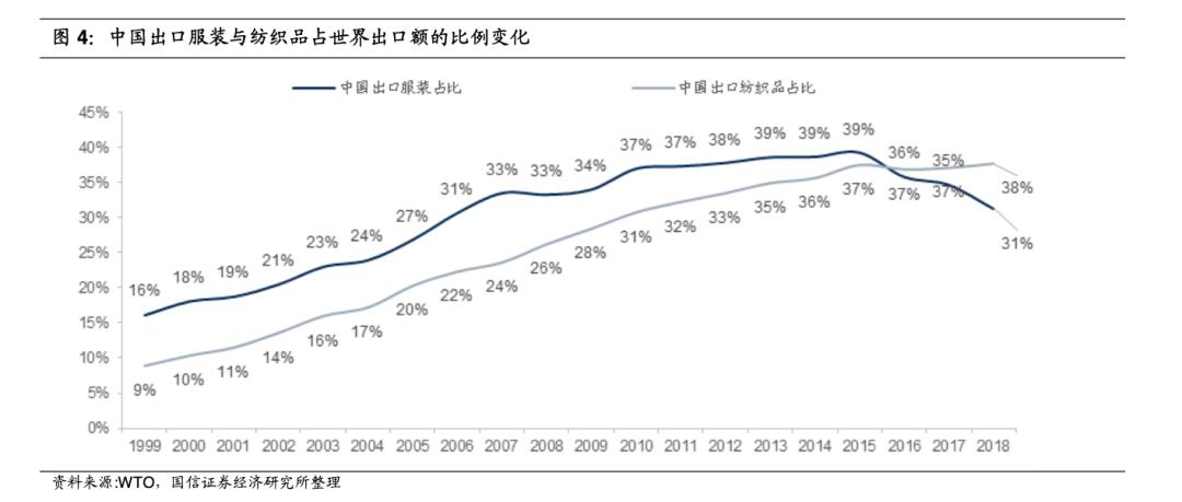 以纺织、服装行业为例,据国信证券整理,1990-2010,中国成为世界工厂,劳动力成本比较低,原料比较充足,加入“WTO”与配额取消加速了纺织业发展;2010年以后,随着人工成本上涨,部分产业转移至东南亚国家。