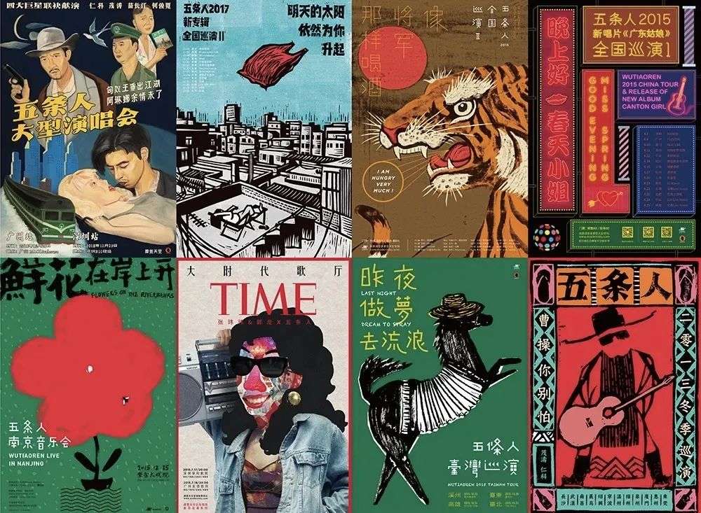 比如,五条人乐队的logo是一个红色塑料袋,他们说自己的音乐是“塑料音乐”,而他们的大背油头、人字拖、半永久的皮衣和墨镜,并不标准的“标准普通话”,都鲜明的彰显了他们“市井气息”的人物形象。