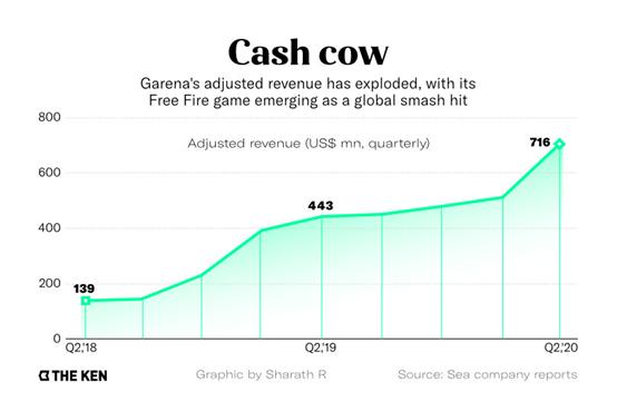 2017年,Garena推出自研手机游戏《Free Fire》。此后,《Free Fire》成为一款全球大作——根据App Annie的数据,2020年4月至6月间,全球下载量第三。截至2019年12月,因此,Garena的年收入达18亿美元,比上一年增长167%。