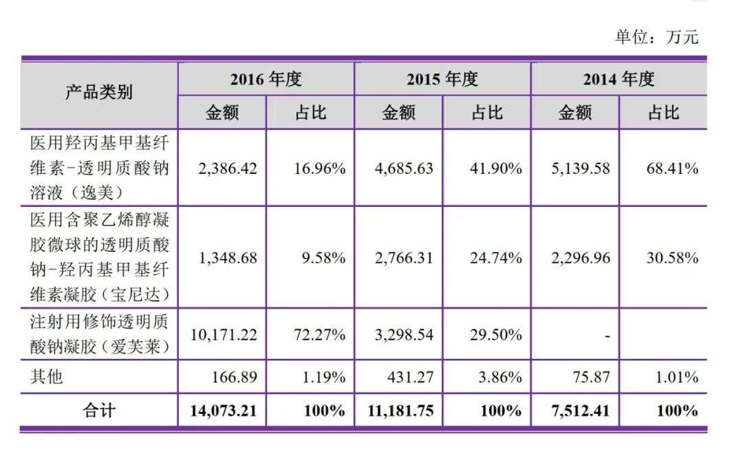 2015年,爱芙莱上市。这是国内首款含利多卡因的注射材料,能够减轻注射疼痛,主要作用于鼻唇沟。上市当年,爱芙莱的营收占比就达到29.5%,次年更是达到72.27%。