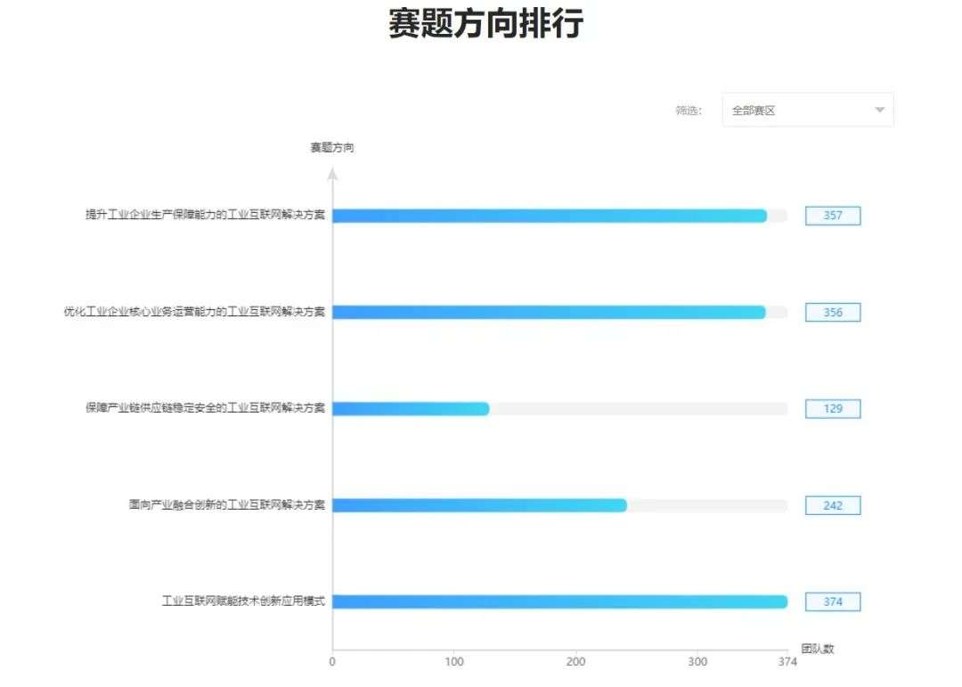 本届大赛,从参赛团队和选手们的赛道选择来看,选择领军组的团队占比64.7%,选择新锐组的团队为占比35.3%;从目前参赛团队及选手们对于五大赛题方向的选择率来看,工业互联网赋能技术创新应用模式、提升工业企业生产保障能力的工业互联网解决方案、优化工业企业核心业务运营能力的工业互联网解决方案这三大赛题方向位列前三。接下来选手们将携优秀的工业互联网解决方案,通过四大赛区区域赛比拼,争夺入围全国赛百强的机会。
