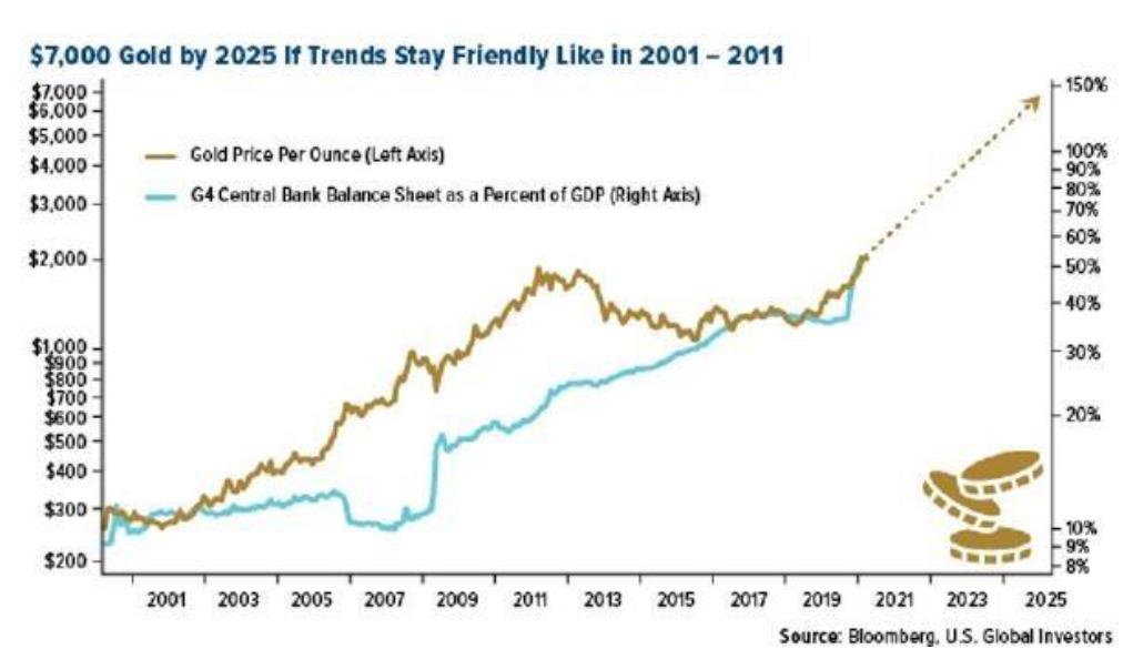 有分析师甚至想象未来三年黄金会涨到4000美元/盎司,五年后涨到7000美元。